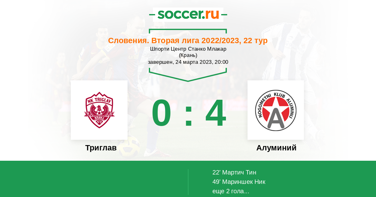В этом матче между командами Триглав и Алуминий фаворитом является команда гостей. Которые продолжают бороться за первое место в турнирной таблице чемпионата чтобы на прямую выходить в лигу выше. А для этого нужно побеждать в каждой игре. Удачи