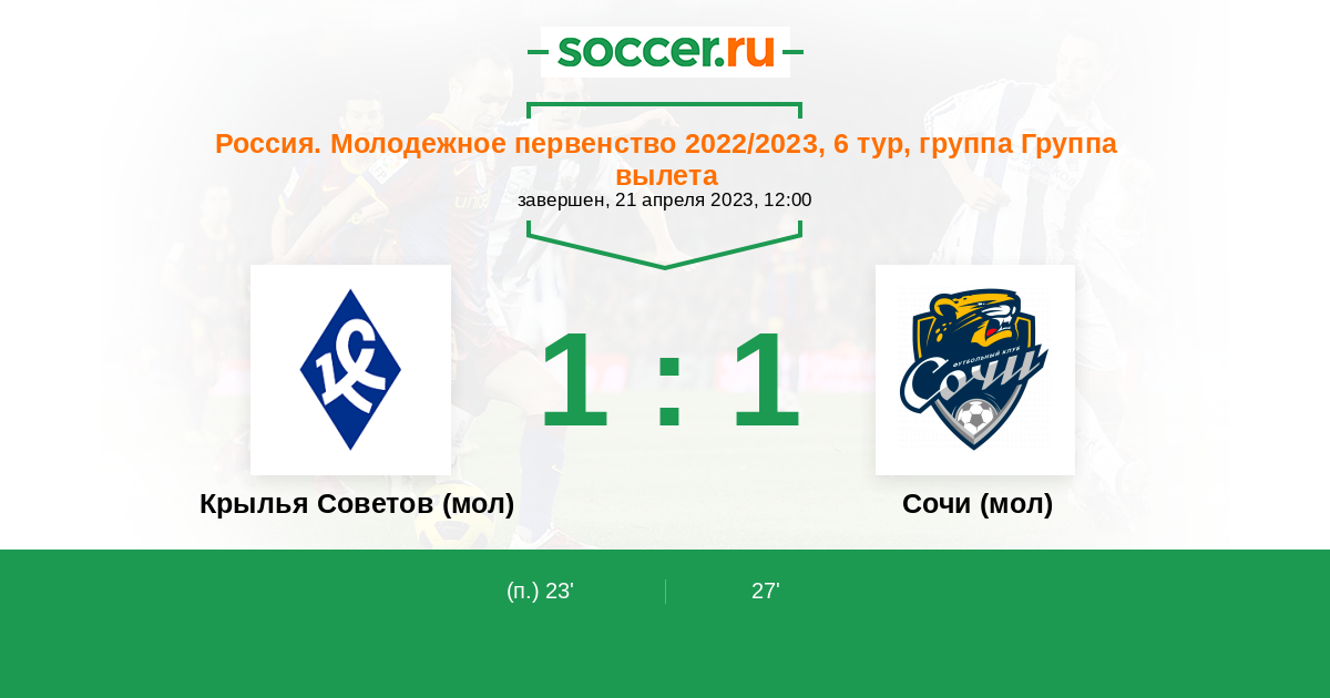 23' (1:0) E. Totsky
