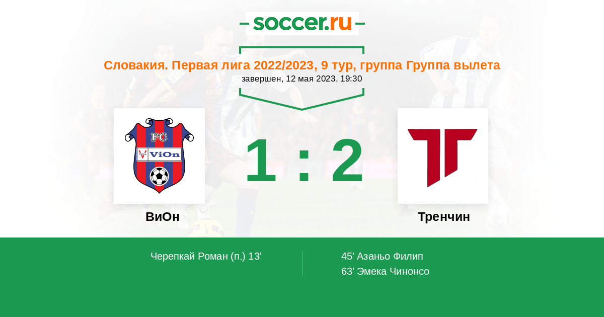 45' (1:1) Азаньо Филип (11) (Кмет Матуш (28))
