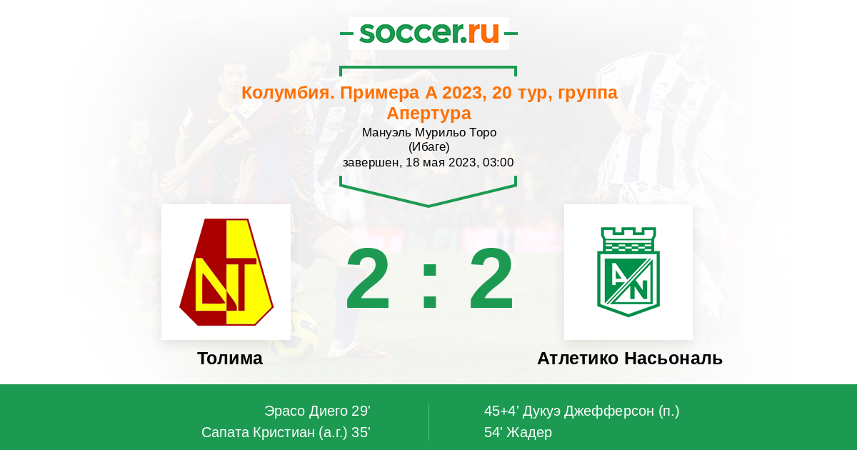 35' (2:0) Автогол Сапата Кристиан (2)
