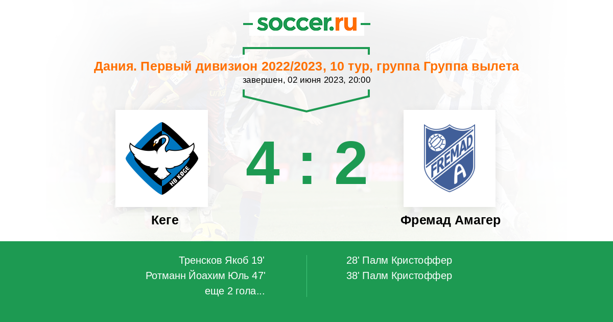 47' (2:2) Ротманн Йоахим Юль (11) (Тренсков Якоб (18))