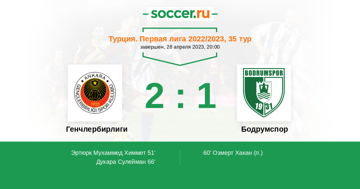51' (1:0) Эртюрк Мухаммед Химмет (72) (Дукара Сулейман (39))