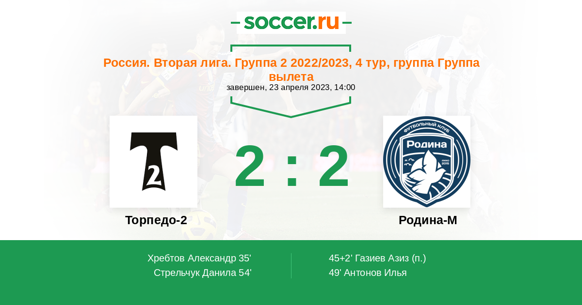 Матчи Россия. Вторая лига. Группа 2 2022/2023