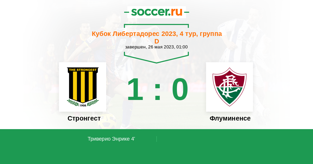 4' (1:0) Триверио Энрике (11) (Ортега Михаэль (10))