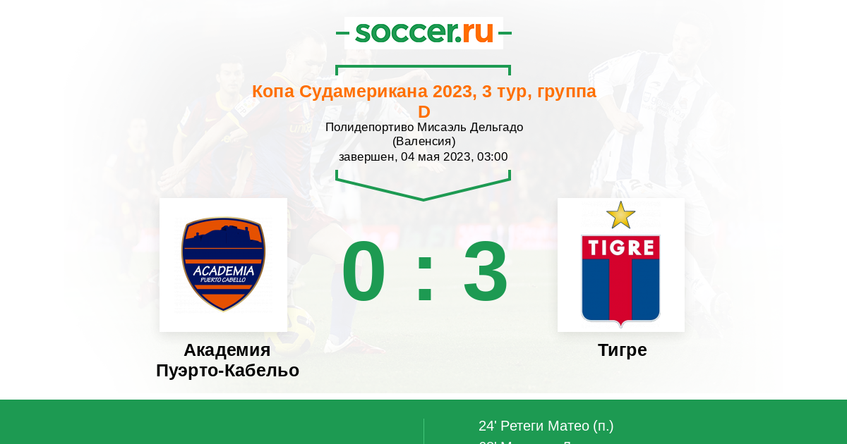 24' (0:1) Ретеги Матео (32)
