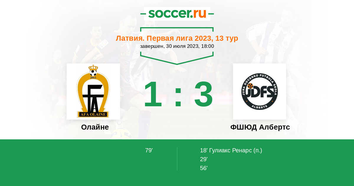 18’ 0:1(П) Гулиакс Ренарс