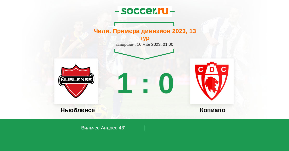 43' (1:0) Вильчес Андрес (9) (Энрикес Жорже (20))