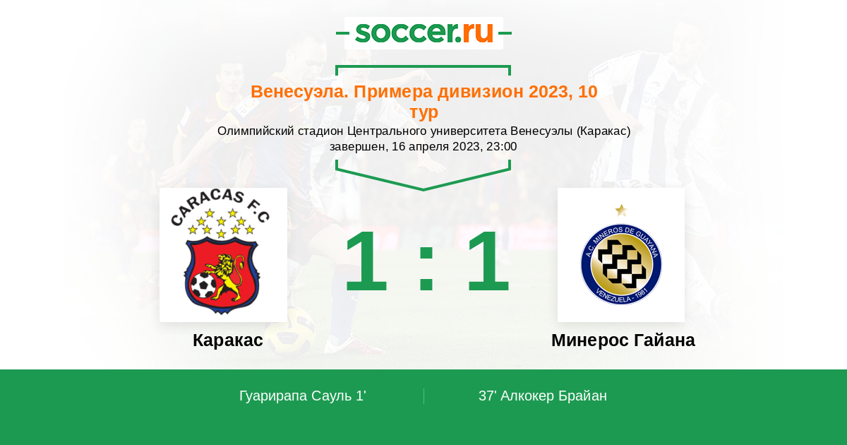 1' (1:0) Гуарирапа Сауль (16) (Ривас Ренне (29))