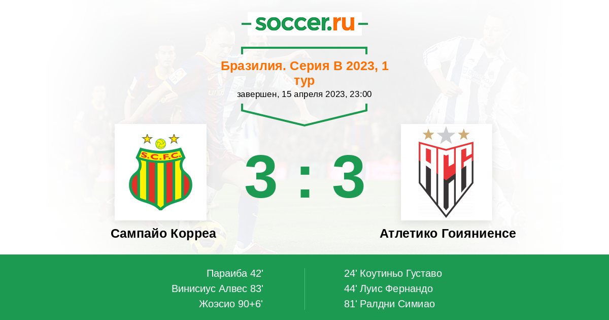 90+6' (3:3) Жоэсио (13) (Параиба (10))
