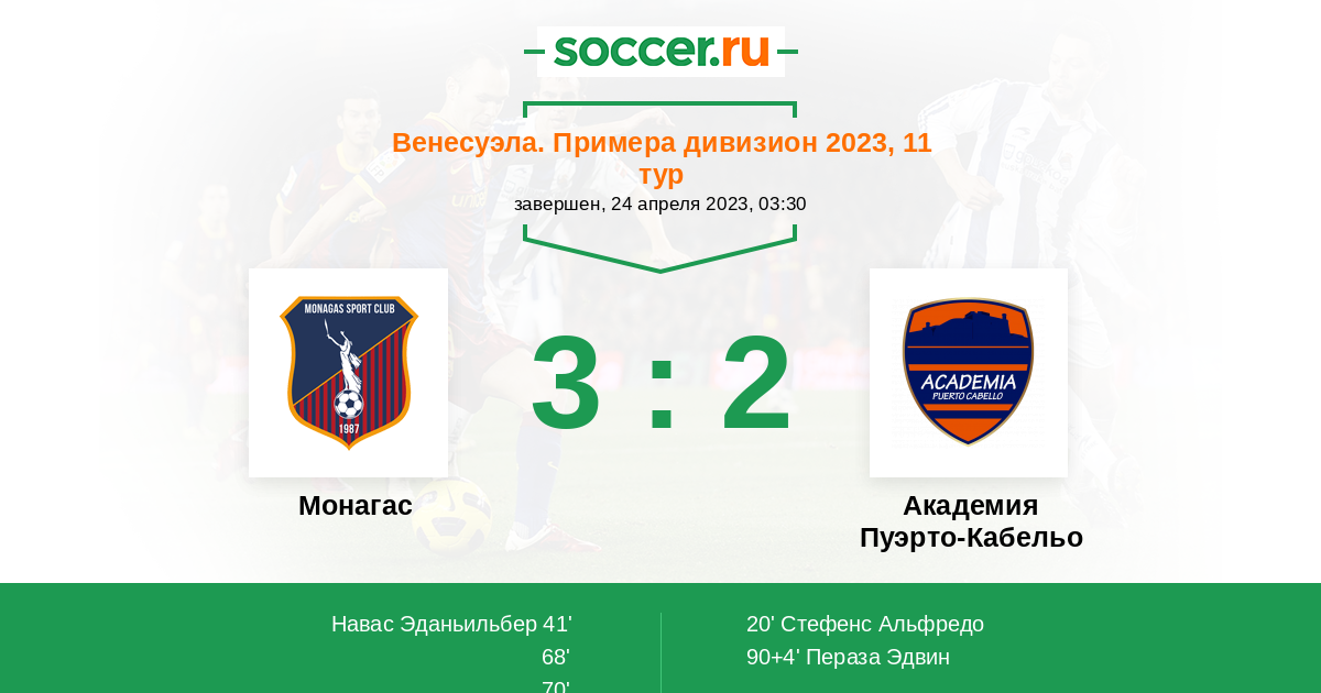 41' (1:1) Навас Эданьильбер (10) (Каррион Эдгар (16))
