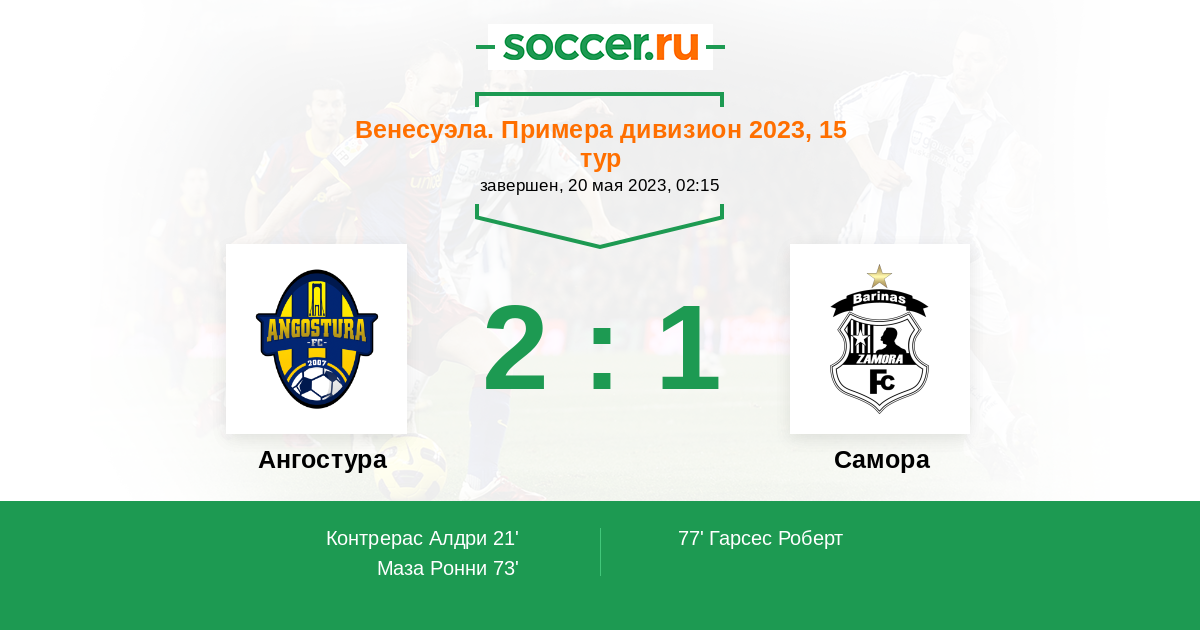 21' (1:0) Контрерас Алдри (33) (Маза Ронни (11))