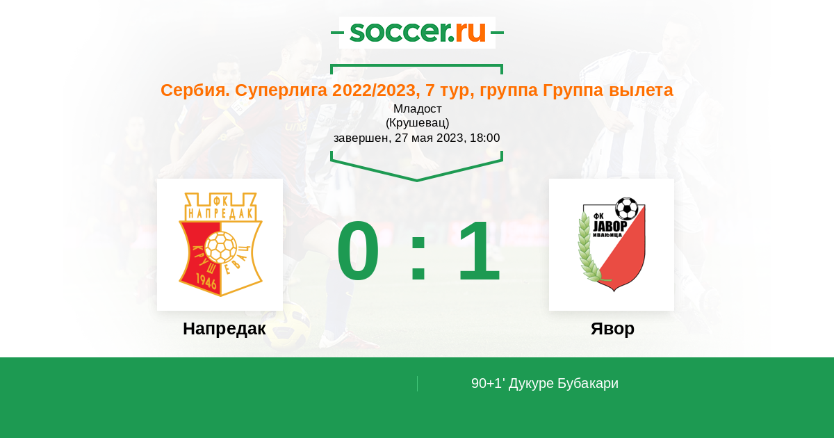 90+1' (0:1) Дукуре Бубакари (20)