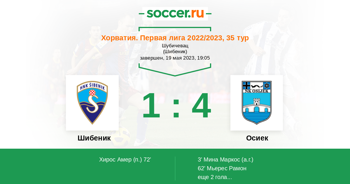 76' (1:3) Мьерес Рамон (13) (Буквич Домагой (39))
