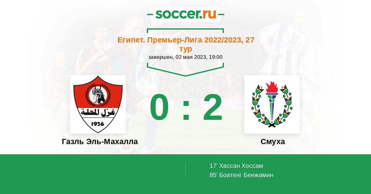 85' (0:2) Боатенг Бенжамин (27) (Ахмед Мостафа (14))