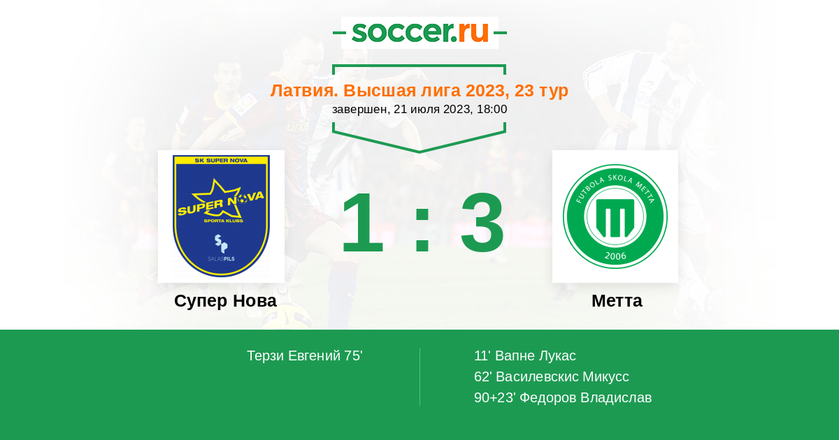 Гол90+23' (1:3) Федоров Владислав (27) (Василевскис Микусс (18))