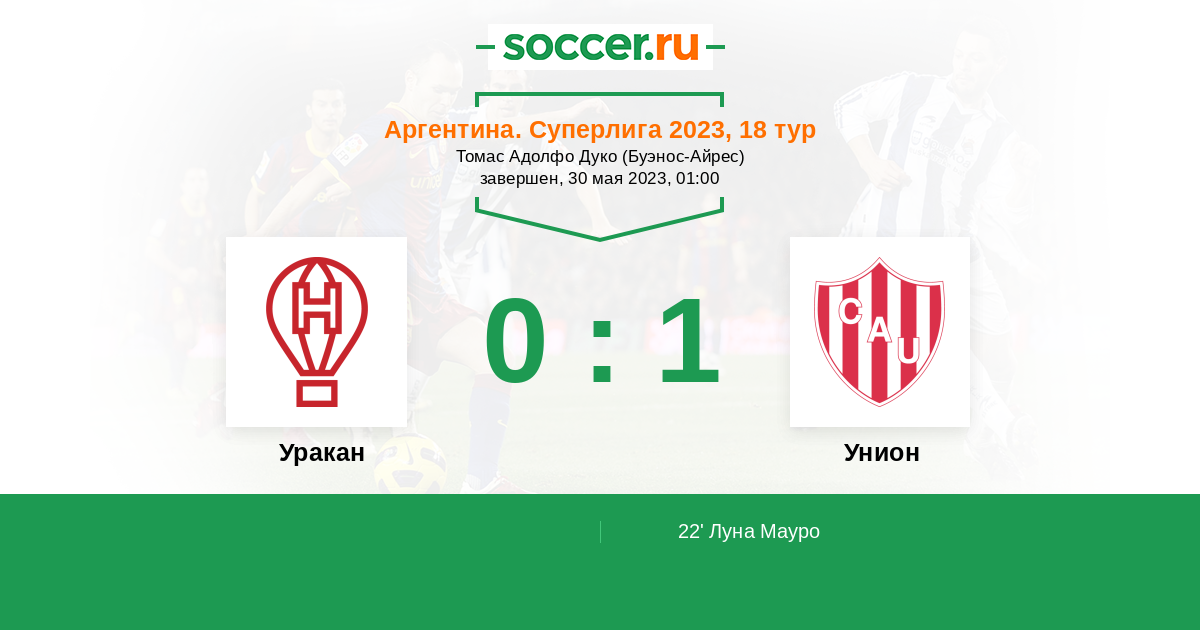 22' (0:1) Луна Мауро (7) (Домина Жеронимо (30))