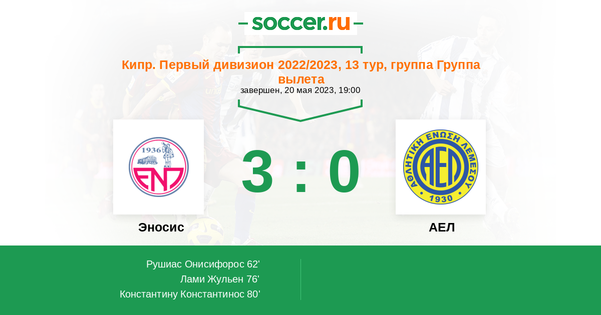 Замена64' Одиссеос Майкл Андреас (76) уходит с поля, Миральяс Кевин (11) вышел на поле