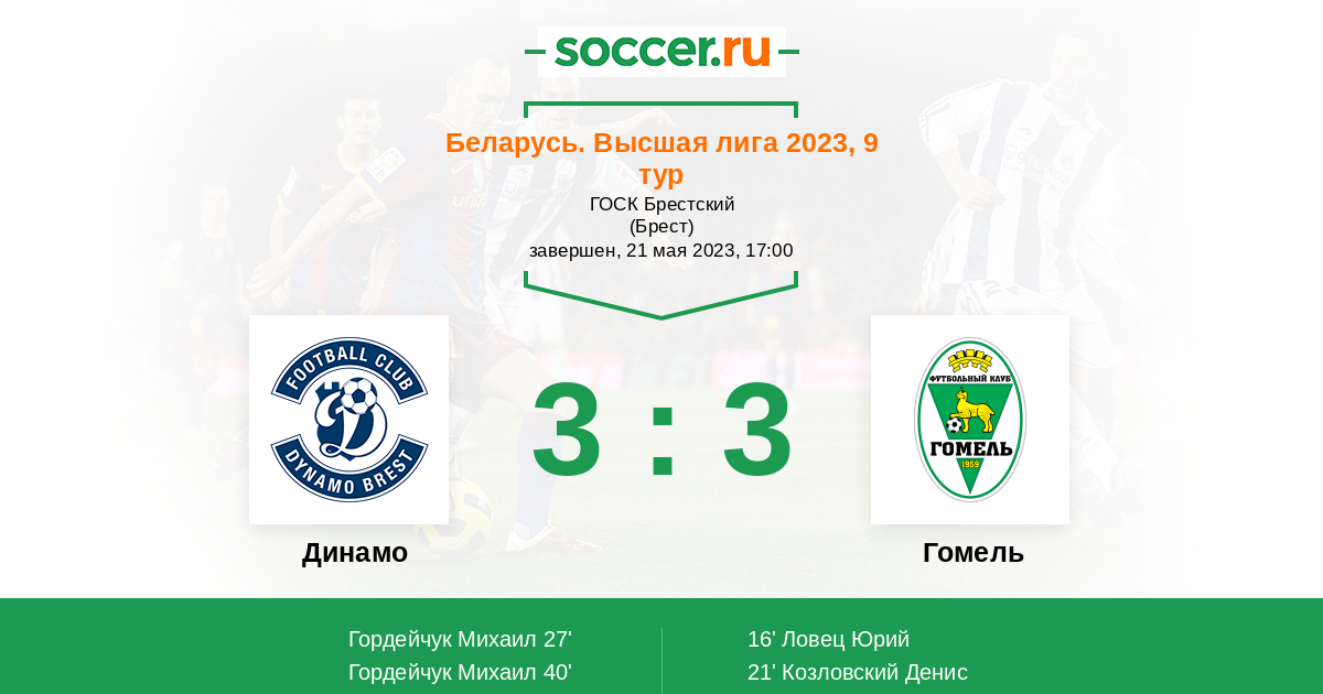 Гол40' (2:2) Гордейчук Михаил (62)