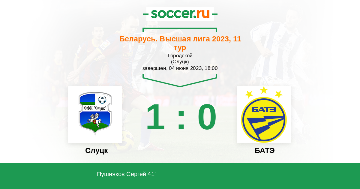 41' (1:0) Пушняков Сергей (7)