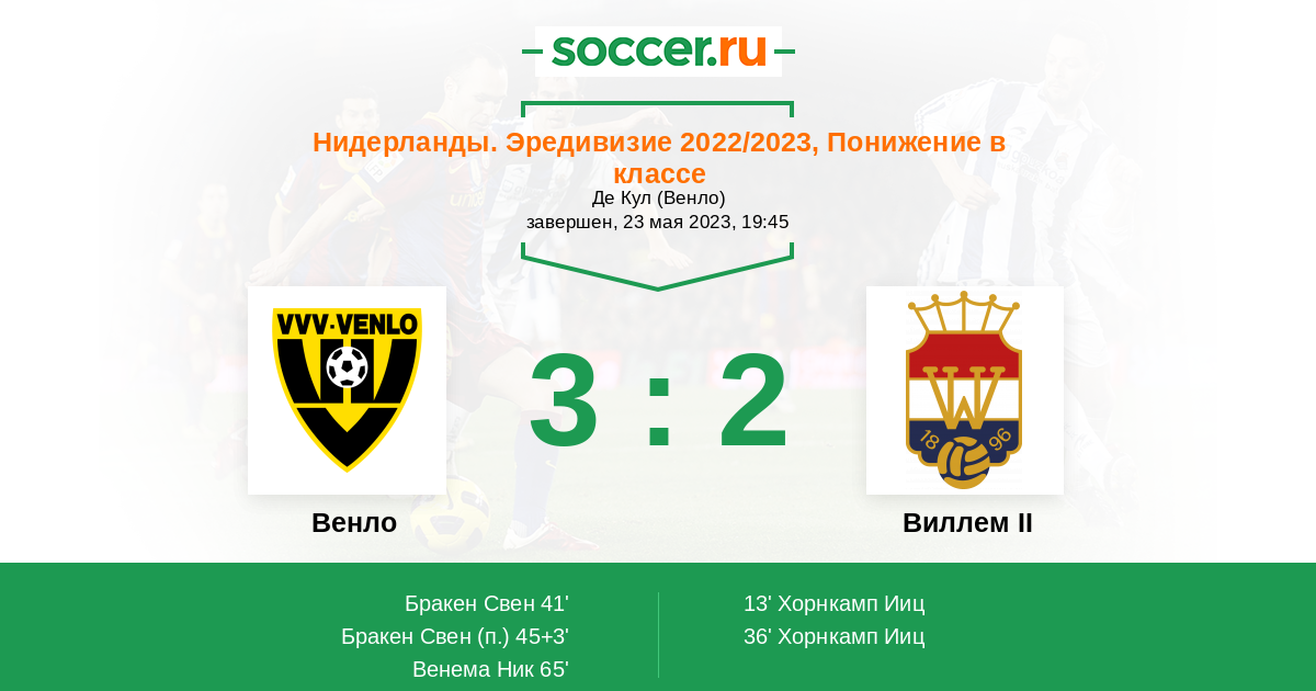 45+3' (2:2) Бракен Свен (9)