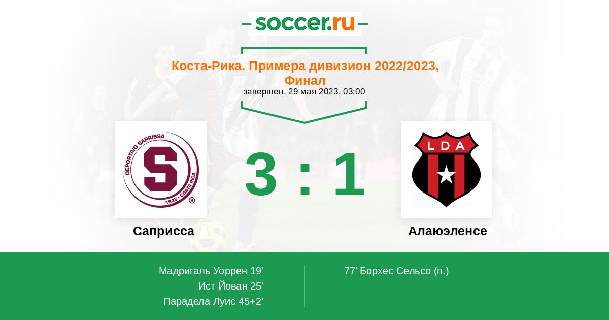 Матчи Коста-Рика. Примера дивизион 2022/2023