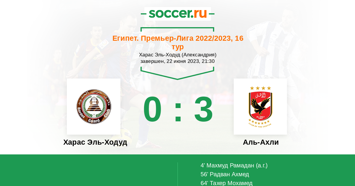 4' (0:1) Автогол Махмуд Рамадан (6)