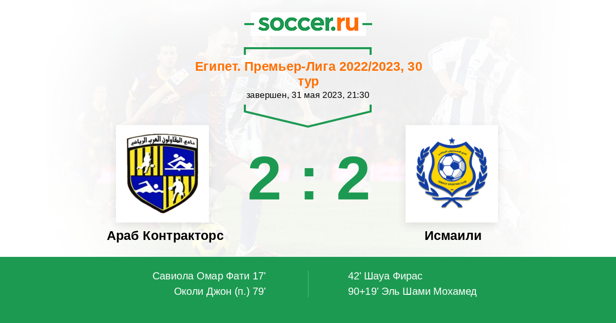 17' (1:0) Савиола Омар Фати (10) (Эль Сайед Ахмед (70))