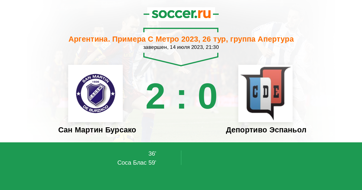 Соса Блас 2:0 59’