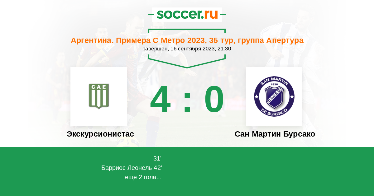 Матчи Аргентина. Примера C Метро 2023