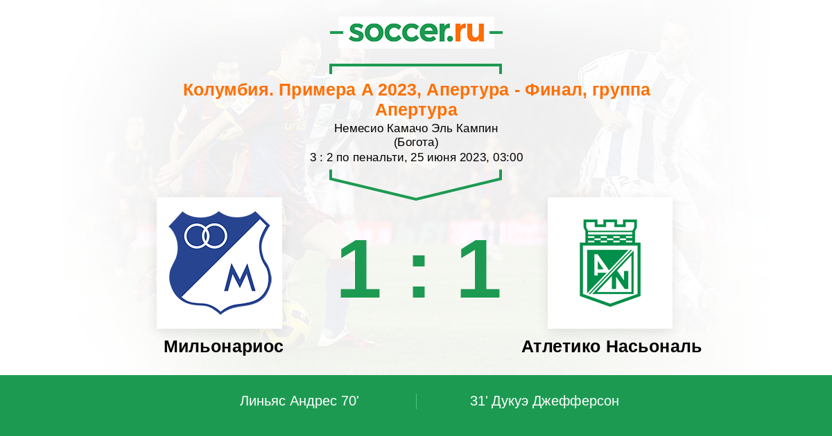 Мильонариос - Атлетико Насьональ