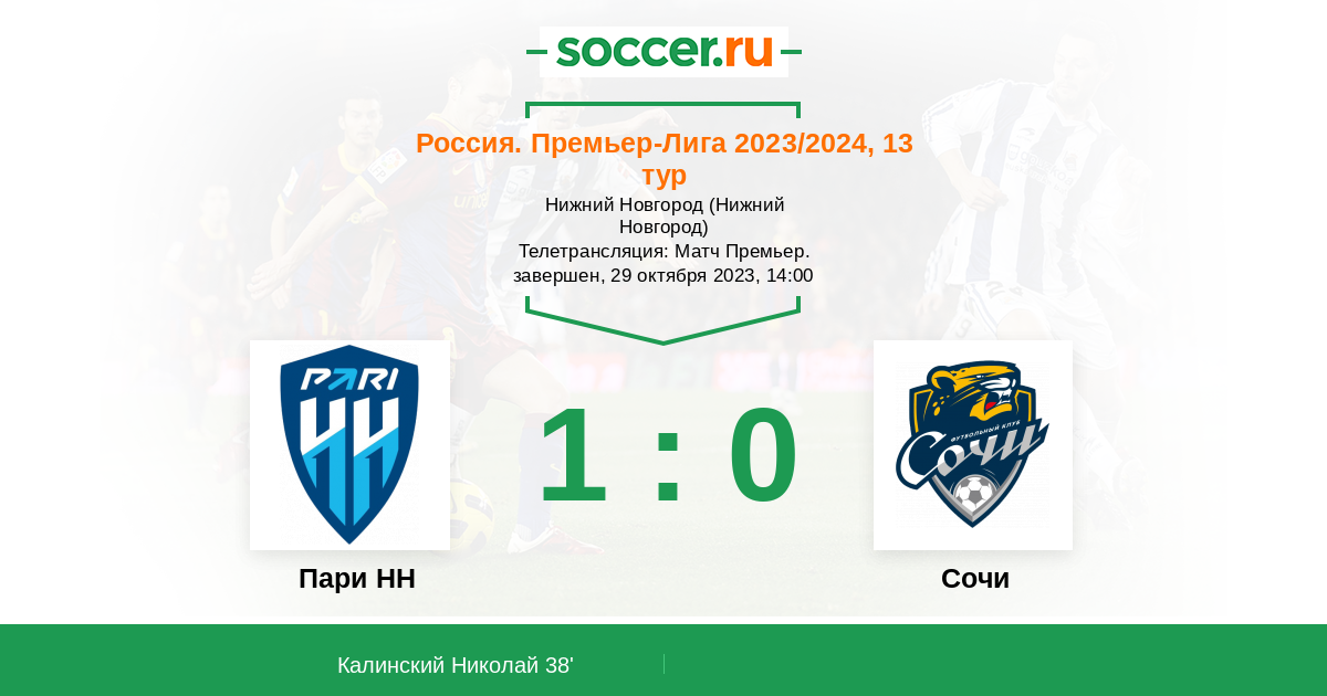 Дома Пари НН всегда играет очень хорошо. Победа же сочи в последнем туре еще не означает выхода из кризиса. Скорей всего хозяева захватят инициативу в свои руки и смогу довести матч до победы.