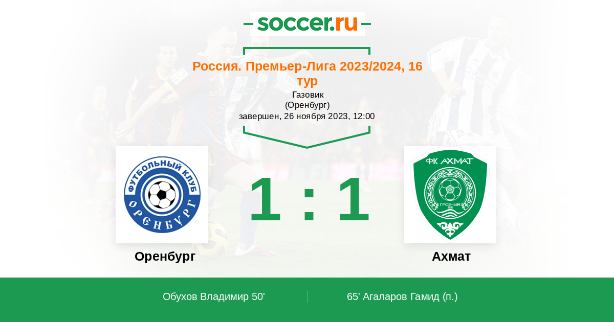 Перед этой встречей стоит оглянуться на результат матча первого круга, в котором “Ахмат” разгромил соперника со счетом 4:0. На выезде клуб из Грозного выступает не слишком удачно, однако один балл он в состоянии заработать, потому как “Оренбург” в родных стенах в этом сезоне из 10-ти встреч выиграл лишь три. Также стоит обратить внимание на то, что оренбуржцы дома пропускают не меньше, чем соперник на выезде.