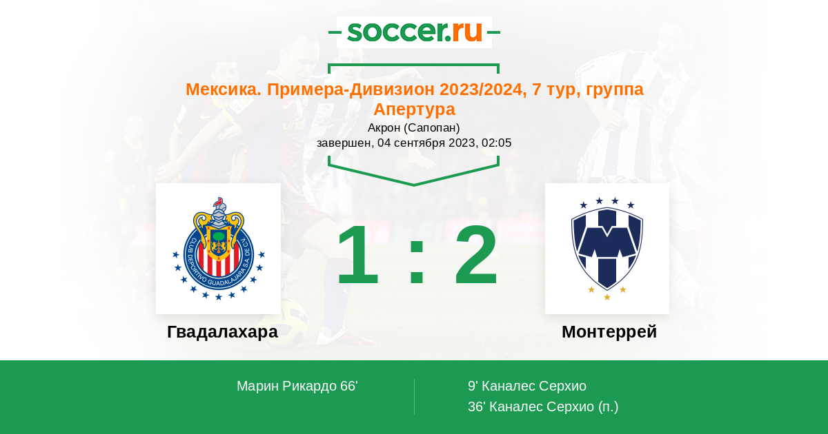 66' (1:2) Марин Рикардо (14) (Кальдерон Кристиан (26))