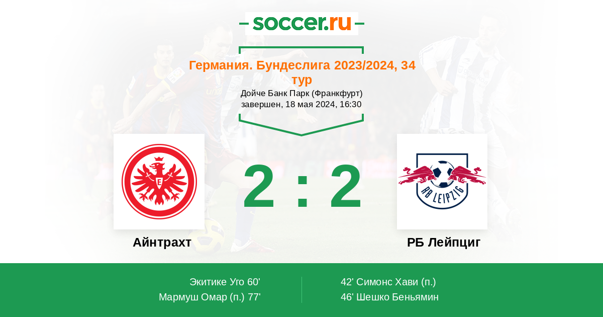 60' (1:2) Экитике Уго (11) (Кнауфф Ансгар (36))