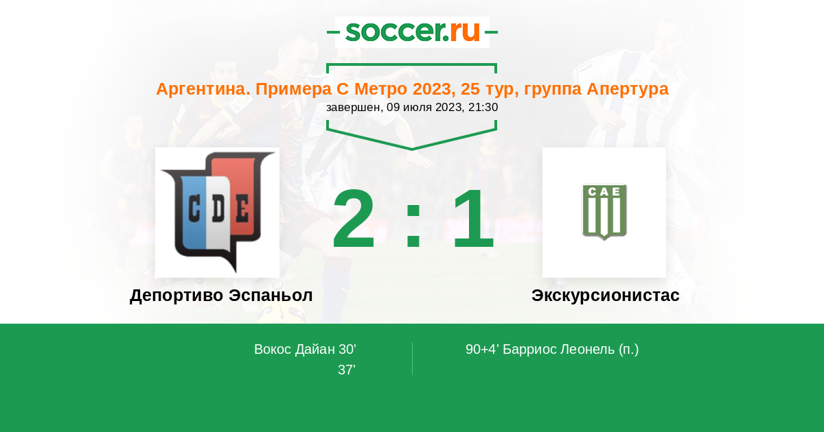 90+4’ 2:1(П) Барриос Леонель