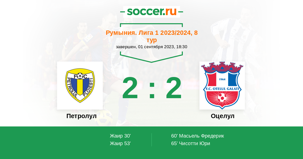 65' (2:2) Чисотти Юри (30) (Телес (21))