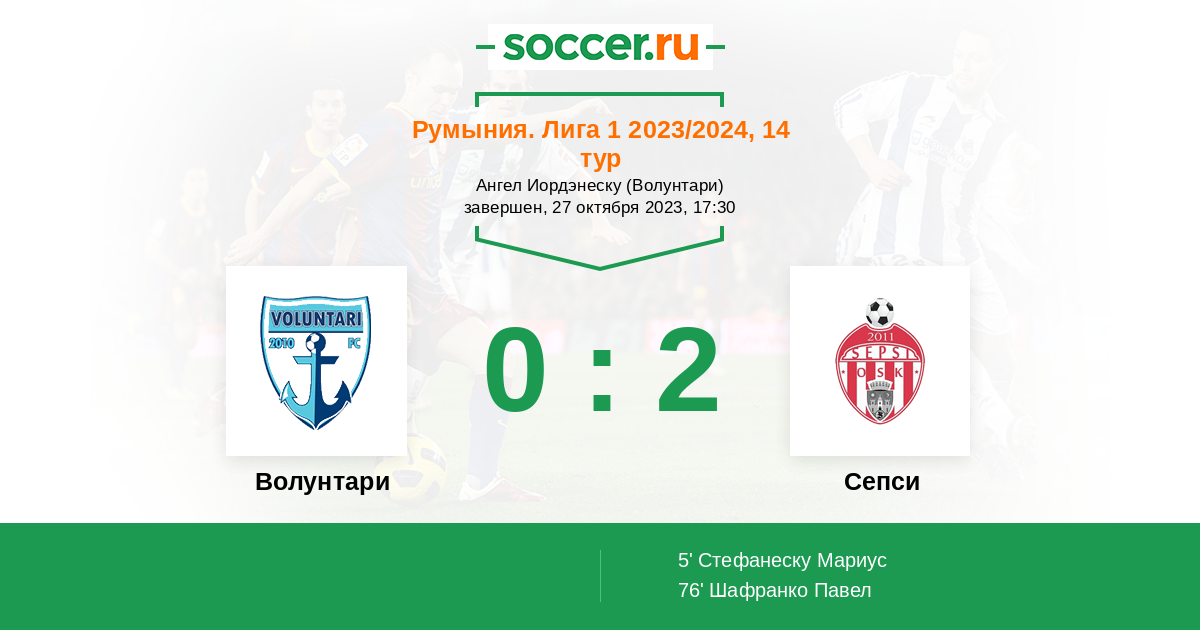 76' (0:2) Шафранко Павел (18) (Стефанеску Мариус (11))
