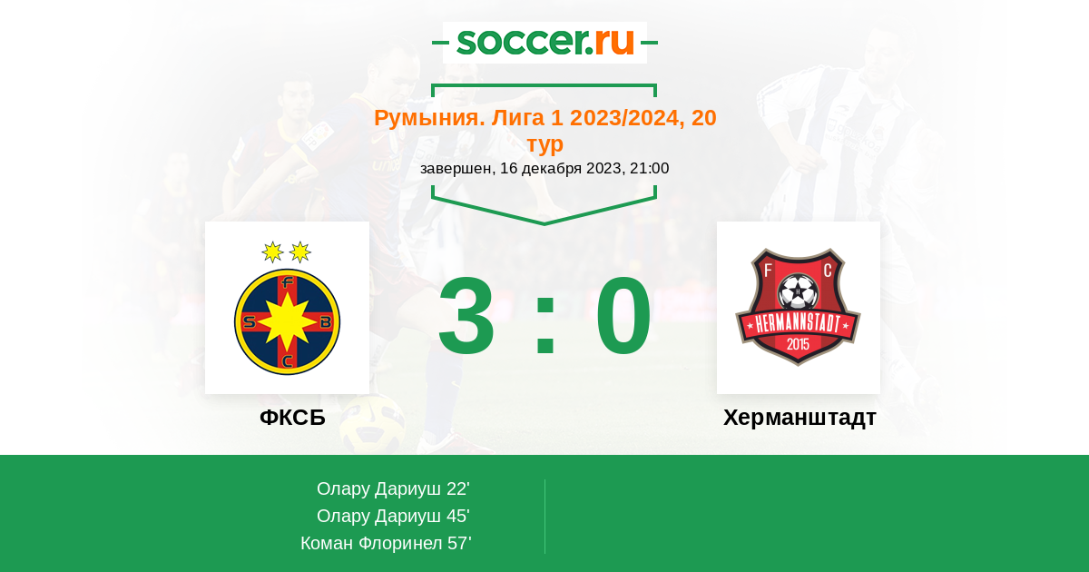45' (2:0) Олару Дариуш (27) (Коман Флоринел (7))