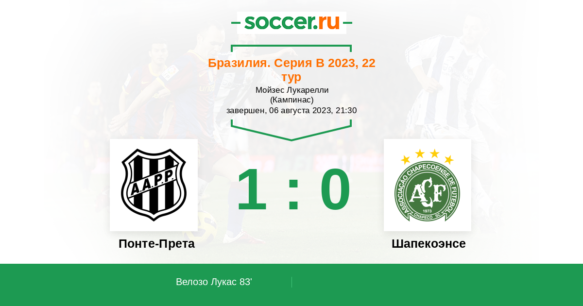 83' (1:0) Велозо Лукас (20) (Эльель Кристиан (9))