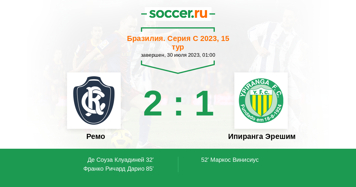 46' Эрик уходит с поля, Клаиртон Нетто вышел на поле