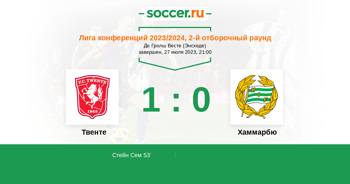 Твенте - Хаммарбю ! Фаворит голландцы , дома при своих трибунах победу упустить не должны , шведы тоже не из простых - обязательно постараются забить свой гол. П1 и ОЗ .
