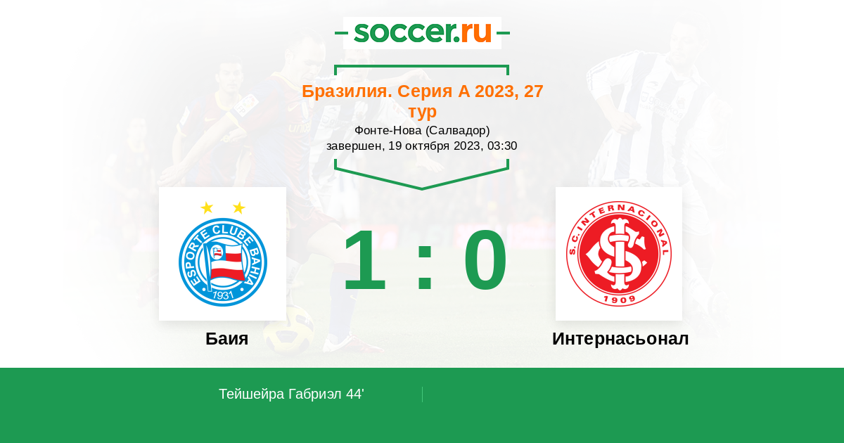 44' (1:0) Тейшейра Габриэл (10) (Резенде Жулио (5))