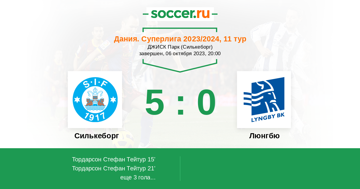 23' (3:0) Тордарсон Стефан Тейтур (8) (Клинг Андерс (21))