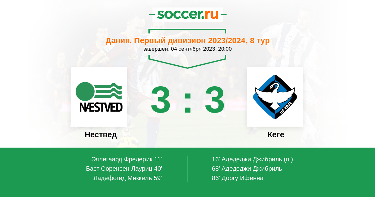 40' (2:1) Баст Соренсен Лауриц (4)