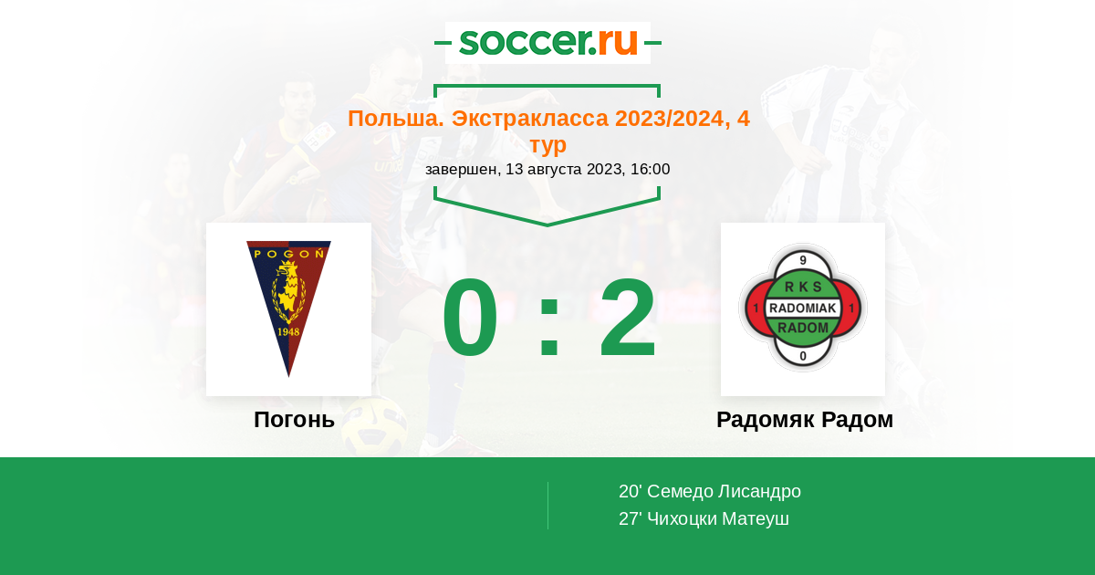 27' (0:2) Чихоцки Матеуш (16) (Вольски Рафал (27))