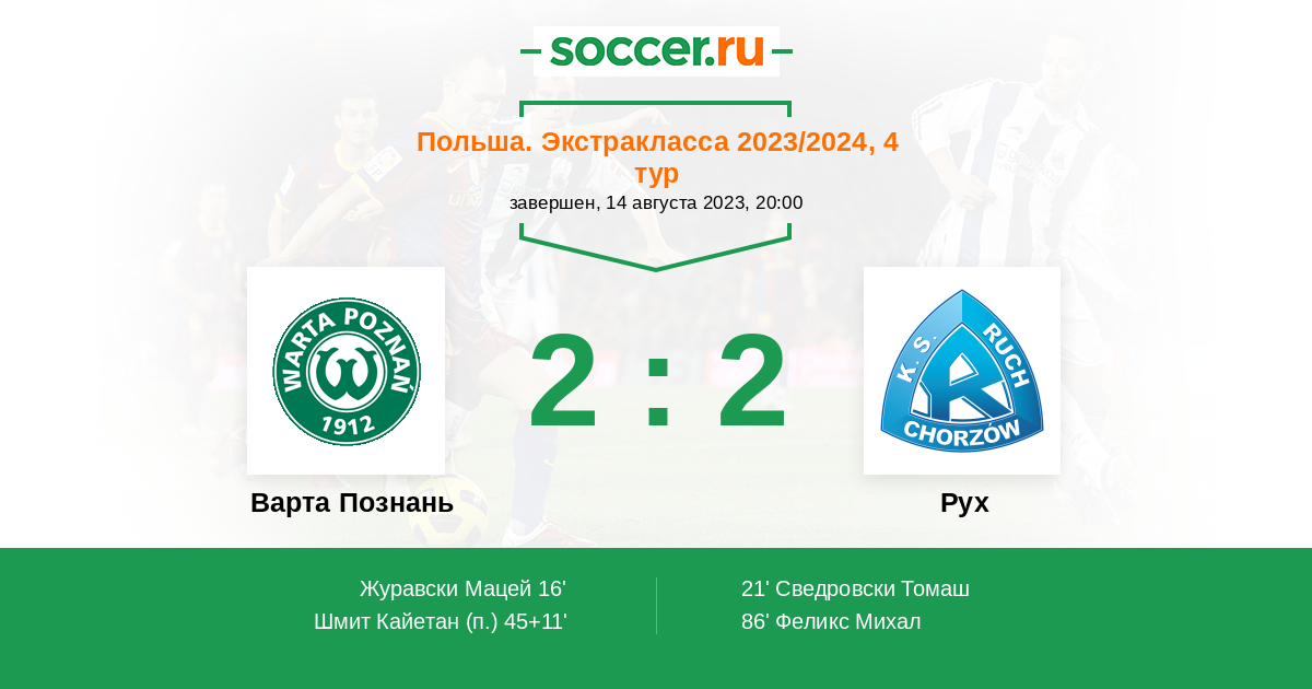 86' (2:2) Феликс Михал (19) (Бартолевски Матеуш (77))