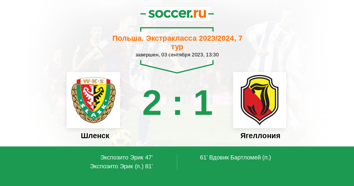 47' (1:0) Экспозито Эрик (9) (Самец-Талар Петр (24))