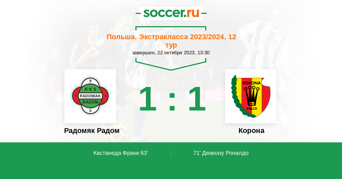 71' (1:1) Деакону Роналдо (10) (Годиньо Маркус (28))