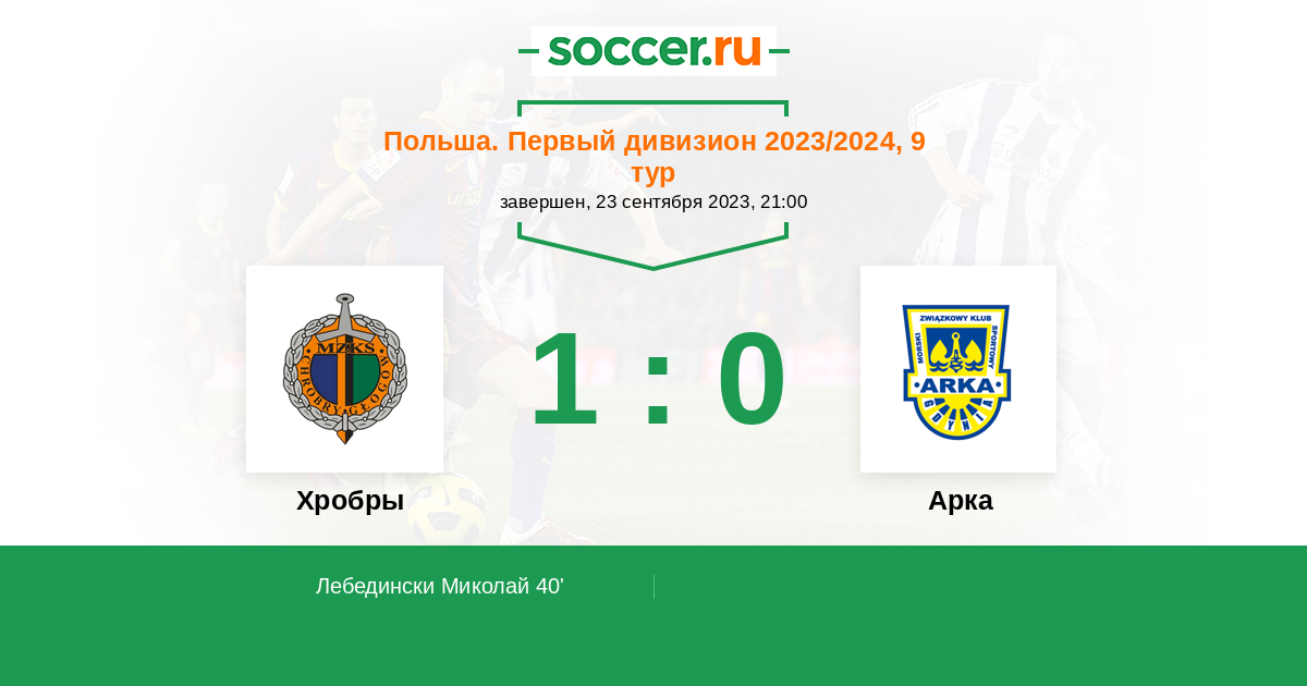 40' (1:0) Лебедински Миколай