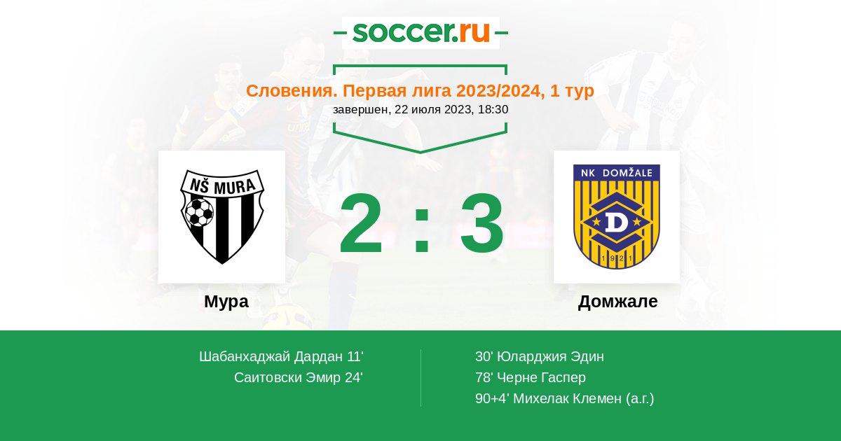 90+4' (2:3) Автогол Михелак Клемен (1)